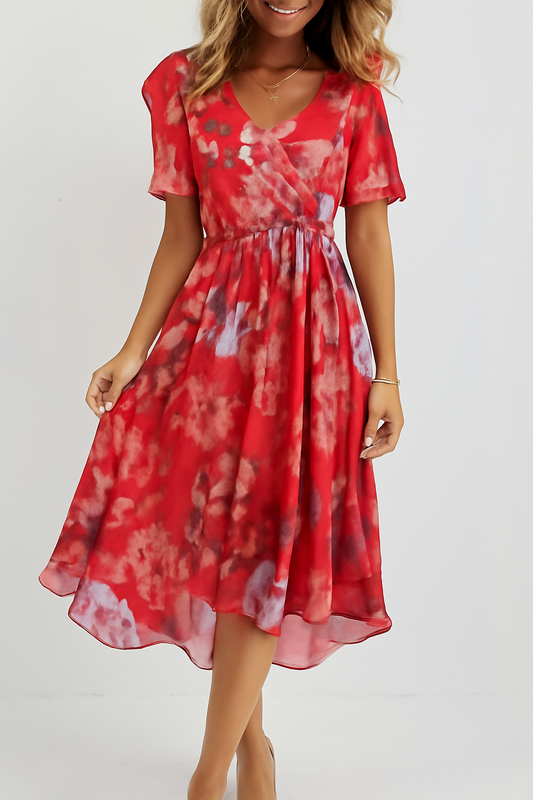 LeRoxy | Losvallende Knie Lange Gebloemde Zomerjurk | Licht & Vrouwelijk