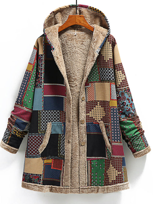 Blijf warm en stijlvol met deze trendy bedrukte jas voor dames. De opvallende print voegt een unieke touch toe, terwijl de capuchon je beschermt tegen wind en regen. Dankzij de relaxte pasvorm geniet je van optimale bewegingsvrijheid en comfort, perfect voor stadswandelingen, outdoor activiteiten of dagelijks gebruik. Ruime zakken maken het gemakkelijk om je essentials bij de hand te houden.