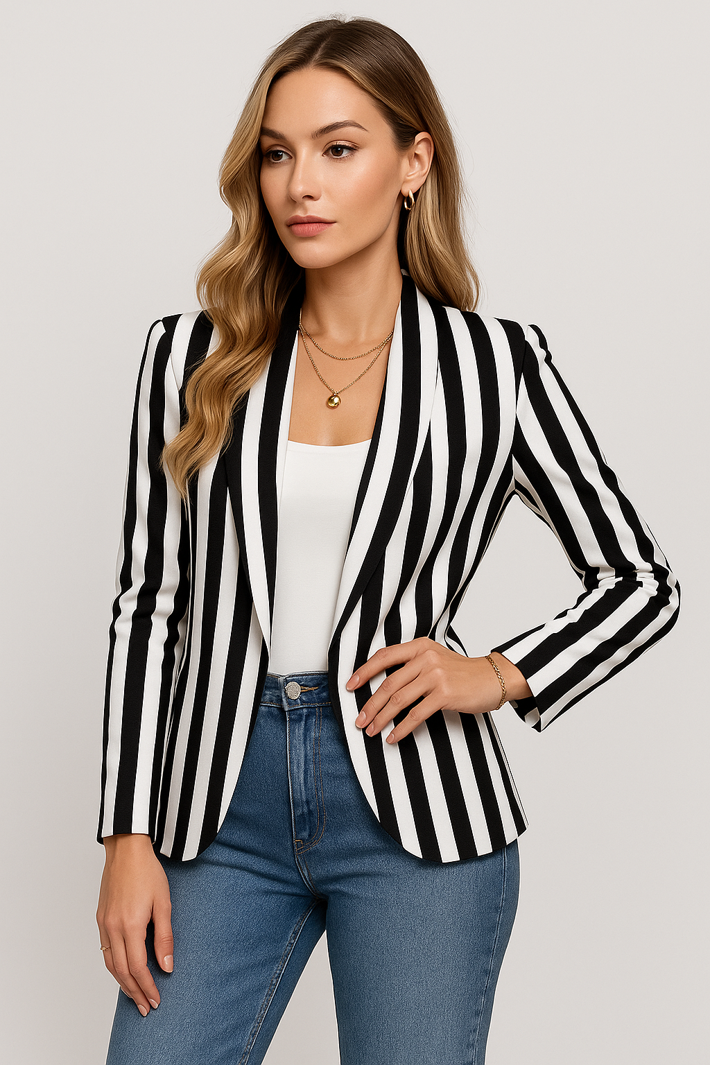Met de LeRoxy gestreepte blazer voeg je moeiteloos een verfijnde touch toe aan je garderobe, voor zowel werk als vrije tijd.