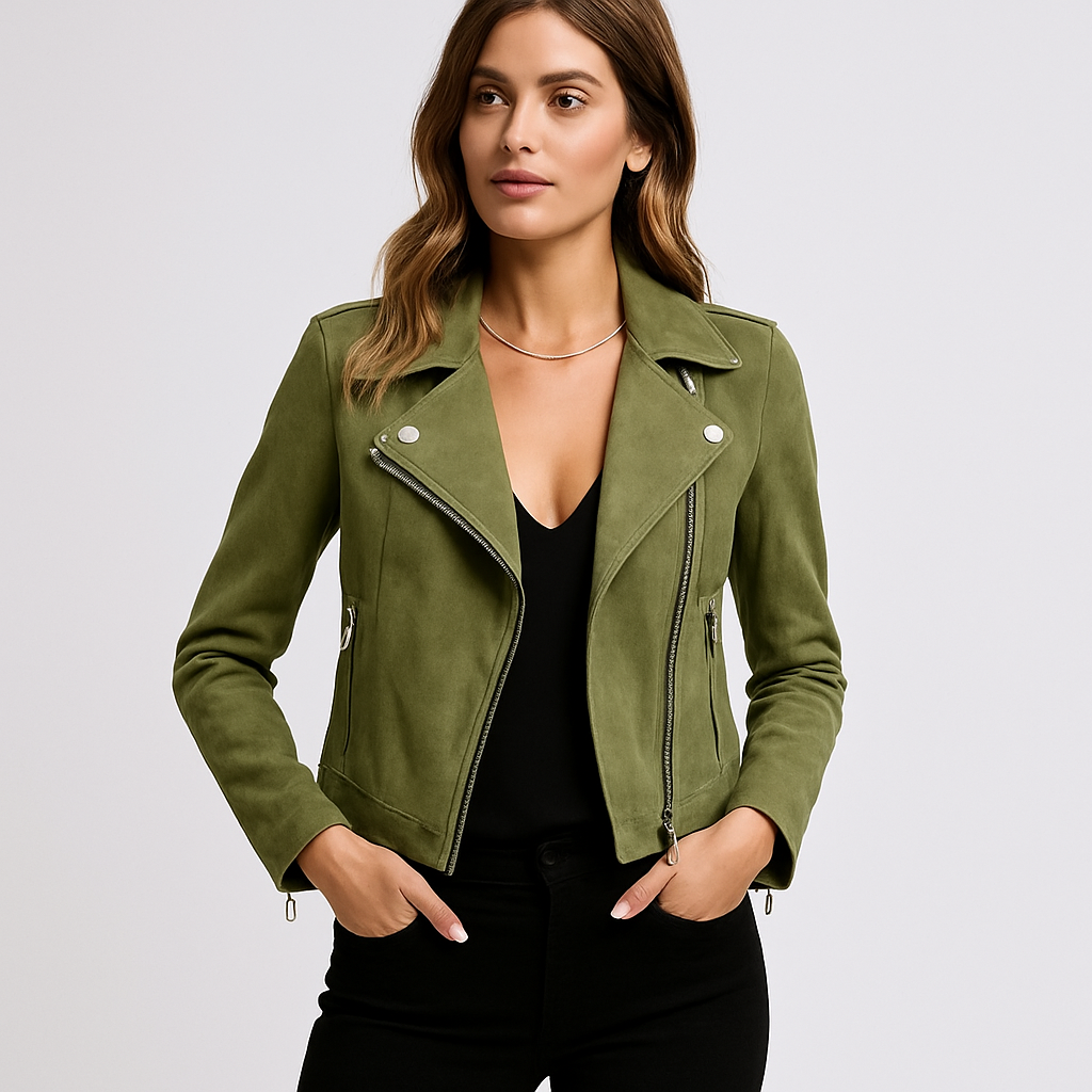 Til je herfstgarderobe naar een hoger niveau met het LeRoxy bikerjack van premium suède. Dit jack combineert stoere bikerstijl met tijdloze elegantie, perfect voor de moderne vrouw die comfort, stijl en veelzijdigheid waardeert.