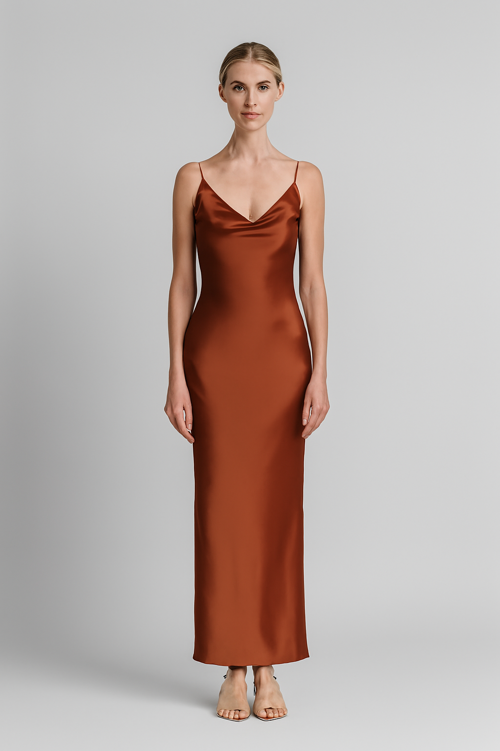 Voel je onweerstaanbaar in deze satijnen maxi jurk voor dames. Gemaakt van luxe, soepel vallende satijn die zacht aanvoelt op de huid. Het flatterende slip silhouet met elegante kabelnek en verleidelijke lage rug accentueert je vrouwelijke vormen perfect. Ideaal voor bruiloften, gala’s, cocktailavonden en romantische diners. Verkrijgbaar in meerdere stijlvolle kleuren die passen bij elk seizoen en gelegenheid.