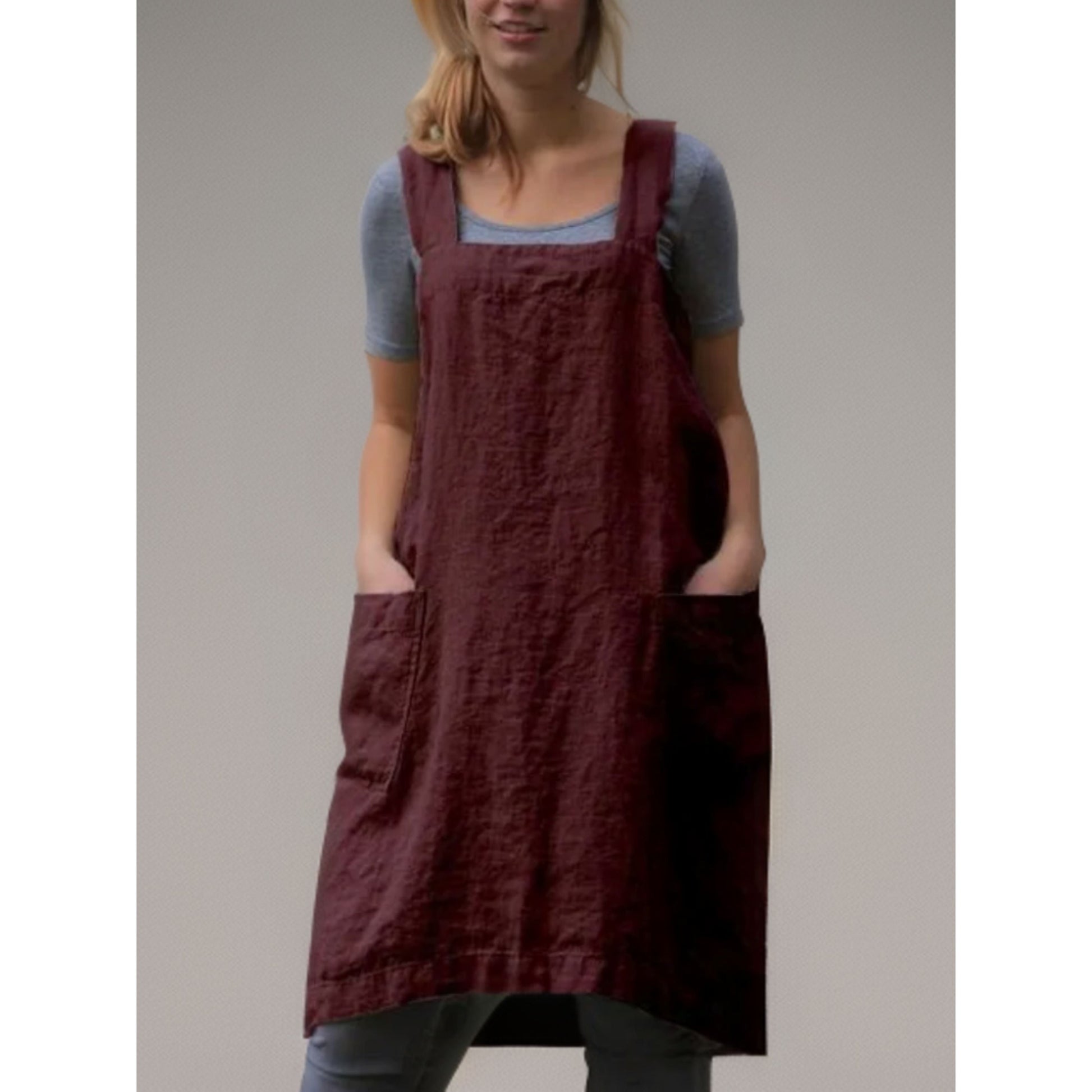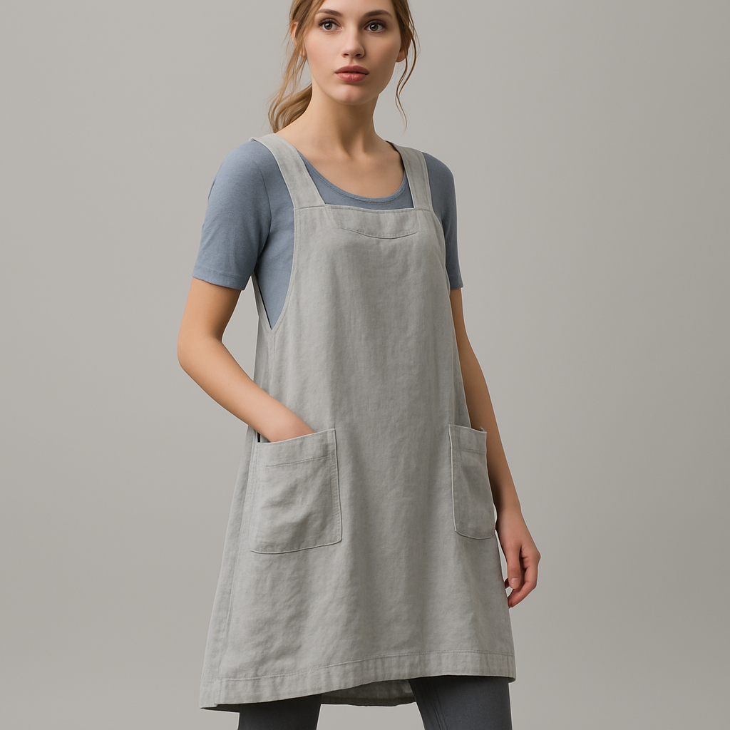 Blijf stijlvol én comfortabel met onze dames schortjurk, ontworpen voor de moderne vrouw die praktisch én chic wil zijn. De relaxte pasvorm, zachte materialen en handige zakken maken deze jurk ideaal voor werk, creatieve projecten, tuinieren of een casual dagje uit. Met dit tijdloze design voel je je de hele dag op je gemak, zonder in te leveren op stijl.