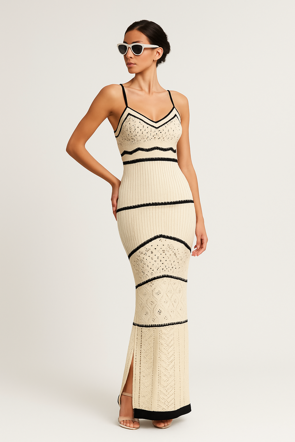 Gehaakte Maxi Jurk Gestreept met V-hals – LeRoxy