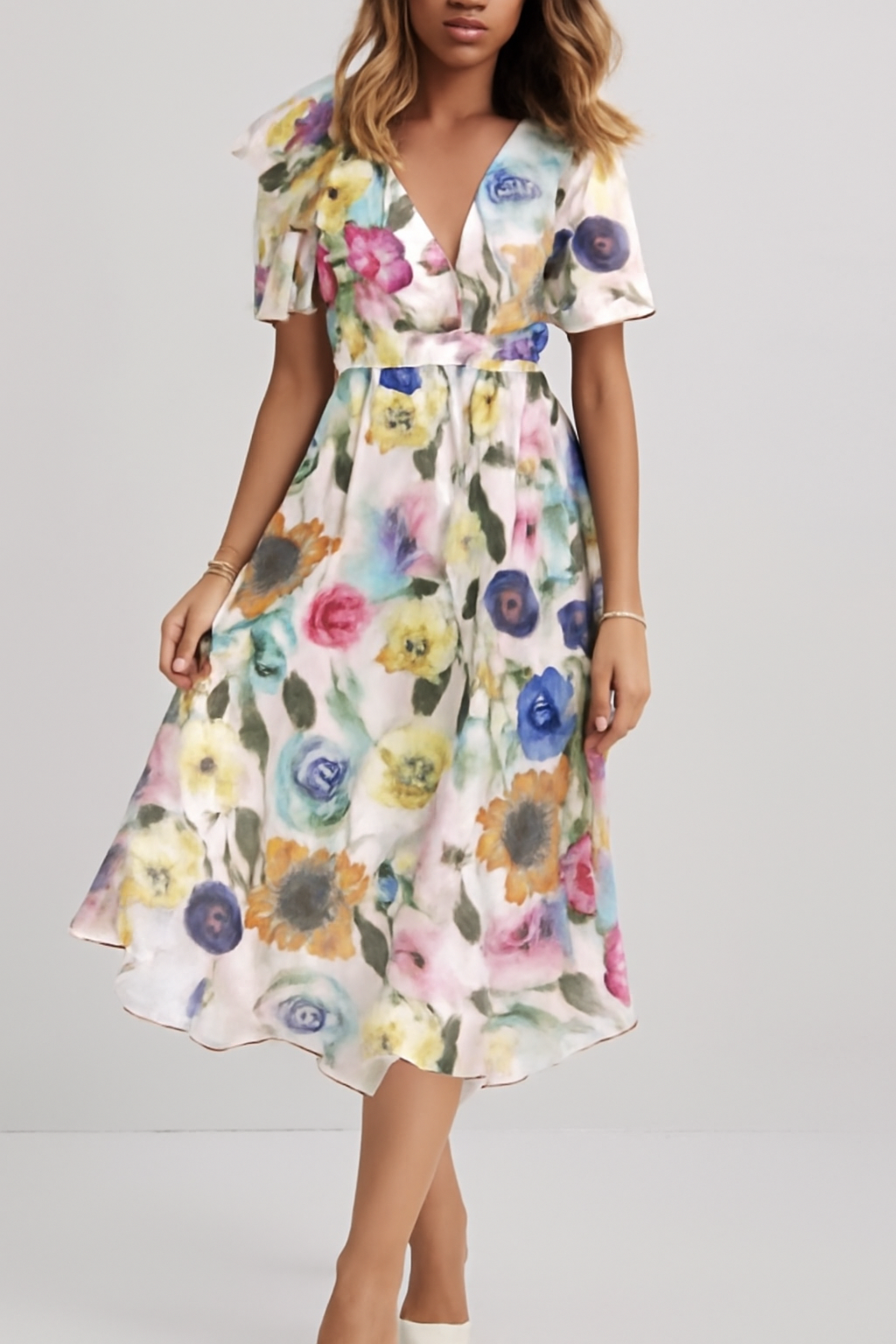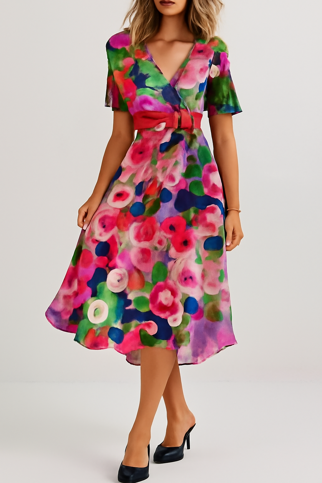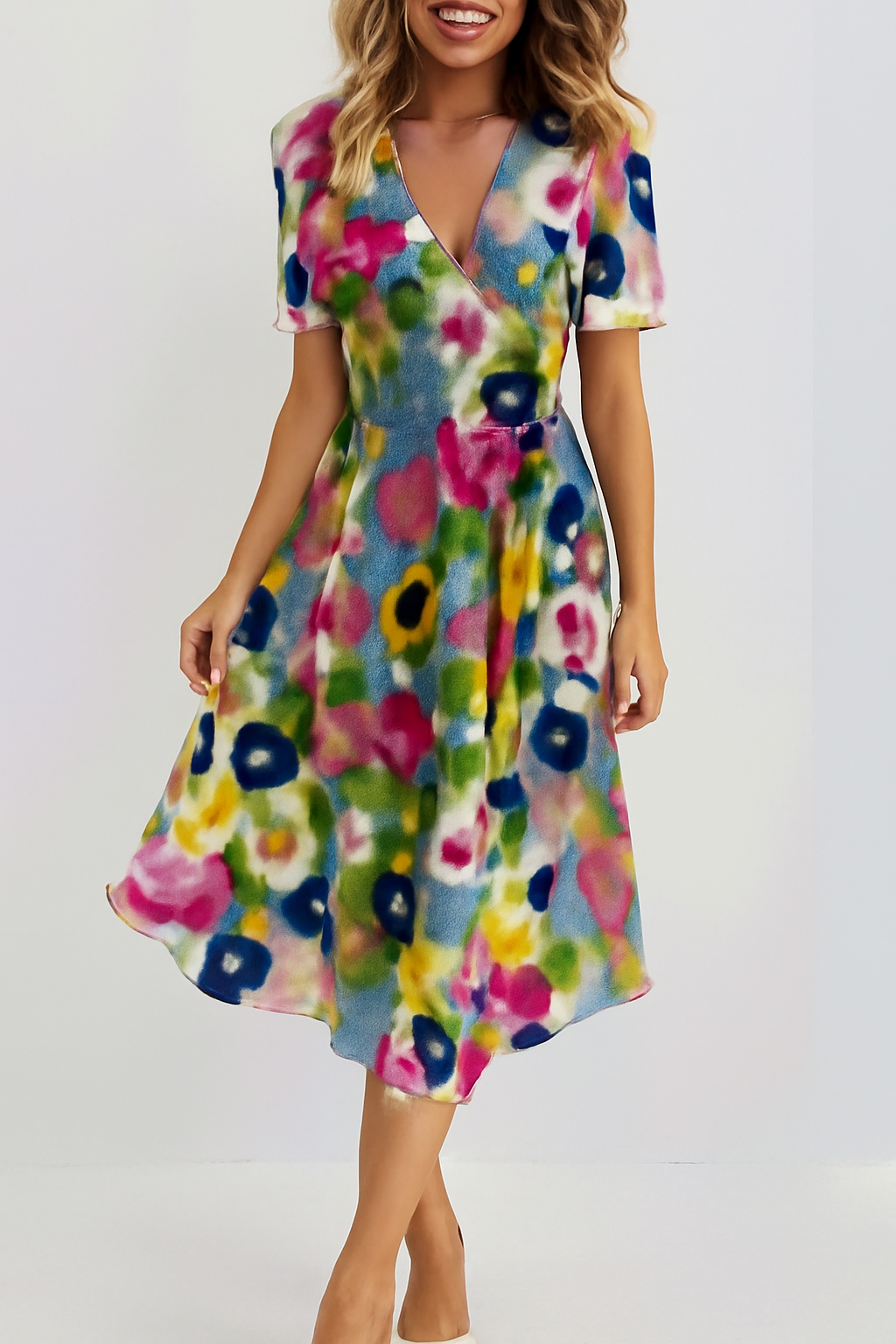 De LeRoxy zomerjurk is dé perfecte mix van comfort en stijl. Gemaakt van zachte, ademende stof met een levendige bloemenprint, valt deze jurk soepel in een losvallende A-lijn pasvorm die jouw vrouwelijke silhouet flatteert. Dankzij de V-hals en korte mouwen oogt de jurk fris en luchtig – ideaal voor warme dagen. De knielengte maakt haar geschikt voor zowel een dagje strand, een zonnig terras als een stijlvolle vakantielook.