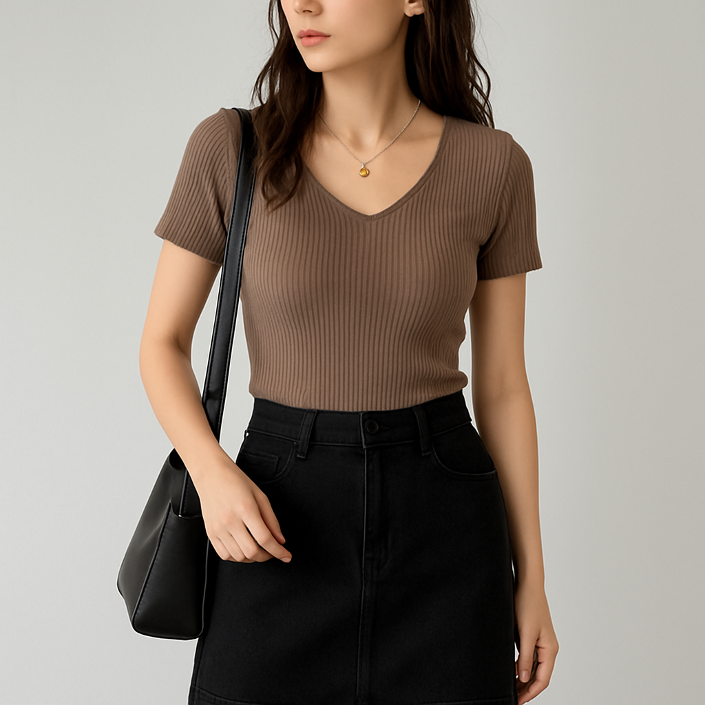 Upgrade je zomergarderobe met deze stijlvolle v-hals geribde trui voor dames! Dankzij het zachte en ademende materiaal zit de trui heerlijk comfortabel, terwijl de flatterende pasvorm en subtiele look zorgen voor een elegante uitstraling. Perfect voor een middagje shoppen, een lunchdate of een casual avondje uit – je zult gegarandeerd complimenten ontvangen!