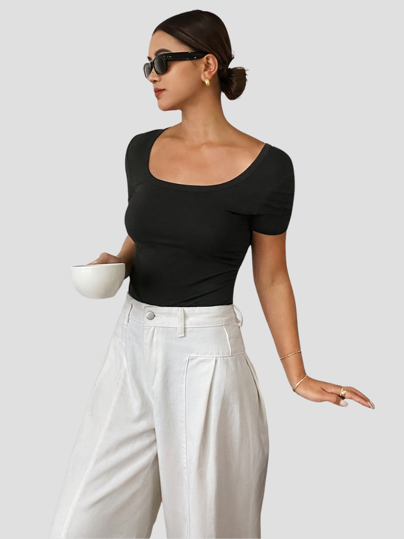 Comfortabele Pasvorm: De top sluit mooi aan zonder te knellen, voor een comfortabele én flatterende look.